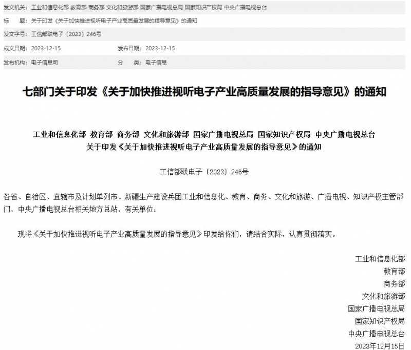 - 為進一步推動視聽電子產業高質量發展,培育數字經濟發展新空間,加快形成供給和需求更高水平動態平衡,滿足現代化產業體系建設要求。12月15日,工業和信息化部、教育部、商務部、文化和旅游部