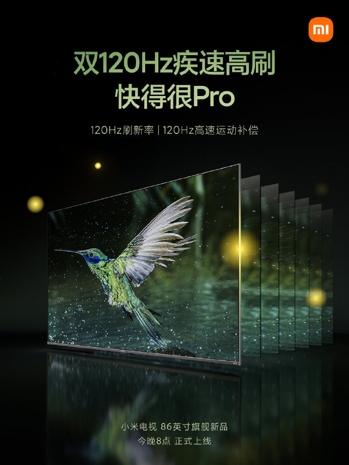 - 小米電視86英寸旗艦新品今晚上線,支持雙120Hz疾速高刷