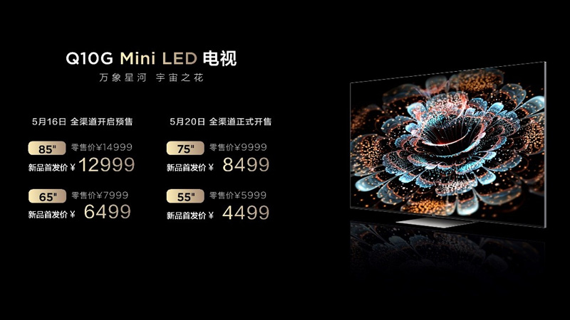 - 5月16日,TCL舉行了萬象星河·Q10G Mini LED電視新品發布會。根據發布會的介紹,本次發布的Q10G Mini LED全系標配了“微米級點陣式控光”技術,而且真正做出了顛覆行業認知的Mini LED畫質價格雙王炸的高質價比精品。