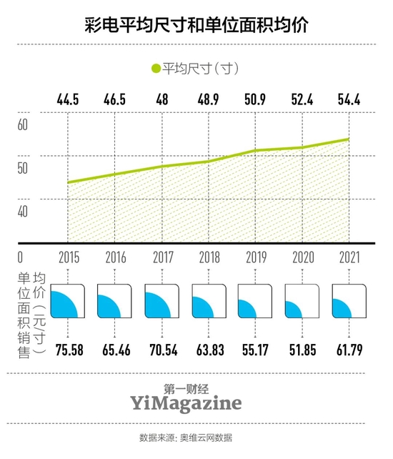 - 中國彩電市場近幾年的發展趨勢可以概括為一句話:屏幕越做越大,但錢越賺越少。 彩電的平均尺寸從2015年的44.5英寸一路增長到2021年的54.4英寸,但是年銷售額卻從1572億元下跌到1289億元