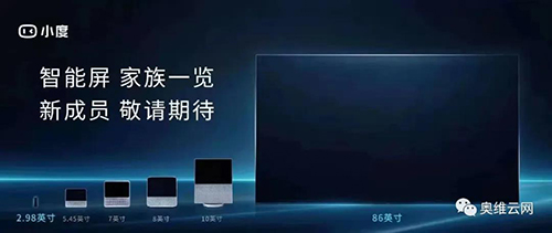 - 8月9日,百度旗下人工智能助手小度官方宣布本月將推出兩款新品,一款尺寸為2.98寸,另一款尺寸為86寸。本次產品發布也標志著百度正式進軍電視行業,選擇86寸產品即符合彩電行業大尺寸化的趨勢,