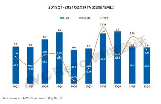 - 最近數(shù)據(jù)機構(gòu)給出統(tǒng)計結(jié)果:今年上半年全球彩電出貨量達到9830萬臺,同比增長6.8%,較2019年同期增長0.2%。其中OLED電視出貨量270萬臺,同比增長133.3%,其他諸如激光電視等產(chǎn)品銷量只有幾十