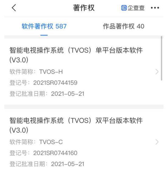 - 近日,華為被曝新增TVOS智能電視操作系統(tǒng)單/雙平臺版本軟件登記批準信息,軟件簡稱分別為TVOS-H及TVOS-C,均在2021年5月21日完成登記批準。 ZNDS智能電視網(wǎng)了解得知,TVOS智能電視操作