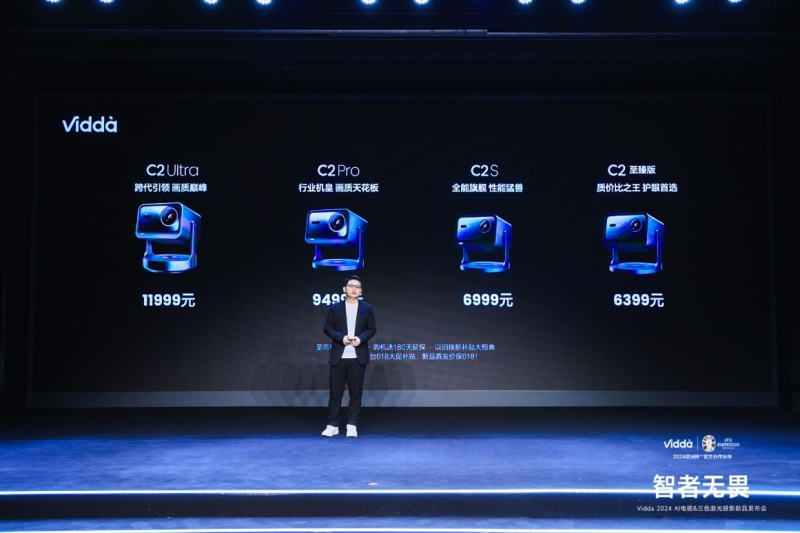 - 5月8日,智者無畏-Vidda 2024 AI電視&三色激光投影新品發布會在北京召開,海信旗下年輕科技潮牌Vidda正式發布三色激光投影C2系列。作為2024歐洲杯官方指定智能投影,本次亮相的Vidda C2系列