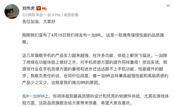 【劃重點】:4月9日,一加手機宣布將于4月15日舉辦主題為“硬核伙伴,實力集結”的線上發布會,正式發布品質旗艦一加 9R。