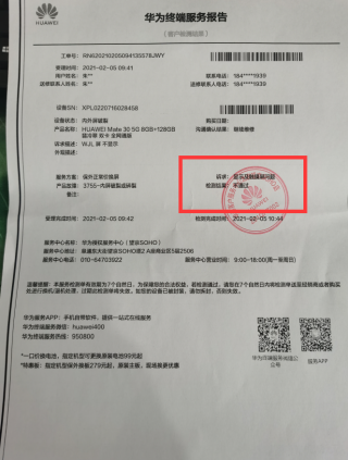 不得已,3天后(2月5日)褚先生來到位于北京望京SOHO的華為授權服務中心,再次進行鑒定維修。華為的維修人員在對手機進行鑒定后表示,褚先生之前在“閃修俠”維修所換的屏幕配件并非華為原裝配件,而且向褚先生展示了真正的原裝屏幕配件并在維修鑒定書中對“閃修俠”維修所換屏幕是否是原裝進行了原裝鑒定。之后發生的結果可想而知,褚先生在華為維修中心重新對手機進行了屏幕維修更換,維修費用為2155元。后續,褚先生多次通過線上渠道以及電話與“閃修俠”售后部門進行溝通,均無果。