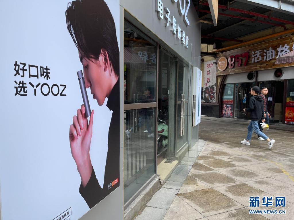 在貴陽(yáng)市觀山湖區(qū),人們經(jīng)過(guò)一處電子煙體驗(yàn)店(5月29日攝)。新華社記者 劉續(xù) 攝