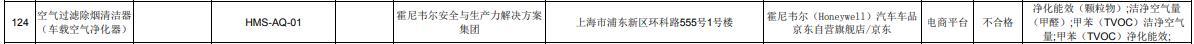 - 江蘇通報產品抽查情況 霍尼韋爾車載空氣凈化器不合格