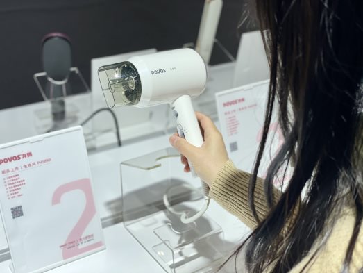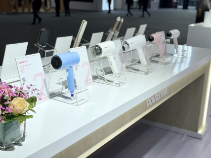 眾多新品電吹風(fēng)在LED等照明下向觀眾展示實(shí)力以及柔美線條,仿佛用自身來說明顏值也是一種競爭力。