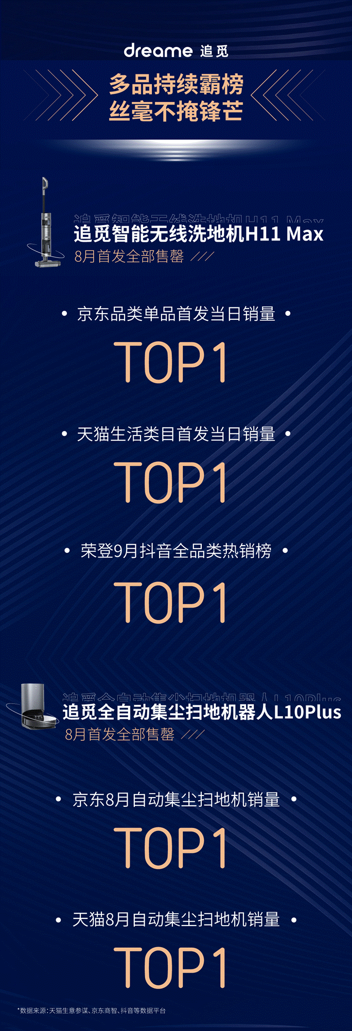 作為智能家電行業(yè)的新銳中國品牌,追覓科技在眾多新生勢力中是研發(fā)和產(chǎn)品實力的代表,發(fā)展勢頭強勁。自7月以來,追覓科技新品頻出,追覓科技旗下多款智能清潔產(chǎn)品成為熱門清潔小家電。其中智能無線洗地機H11 Max和自動集塵掃拖機器人L10 Plus首發(fā)雙雙爆紅,受到消費者的追捧和關(guān)注,銷量雄踞天貓、京東、抖音等多個平臺榜首。