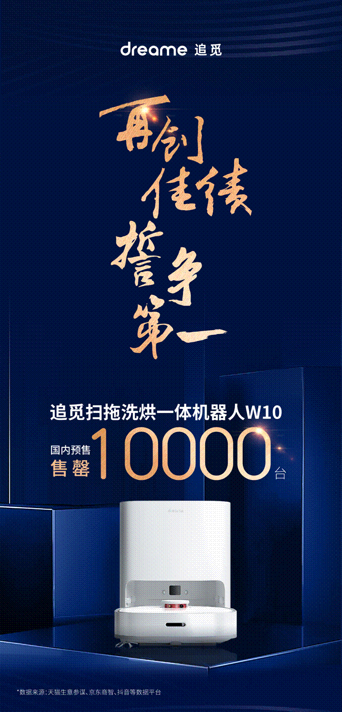 【劃重點】:9月7日,追覓科技新品掃拖洗烘一體機器人W10正式上新,憑借強大的智能掃、拖、洗、烘功能,并結(jié)合可自動水洗、熱風(fēng)烘干抹布的清潔塢,雋拔的全自動濕清潔功能,上新首月10000臺即告售罄!