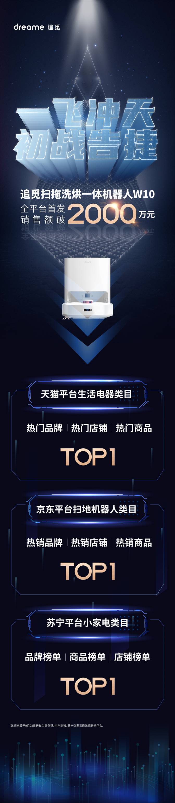 【劃重點(diǎn)】:9月28日,追覓科技推出的掃拖洗烘一體機(jī)器人W10,憑借“掃、拖、洗、烘”一體的超強(qiáng)綜合性能表現(xiàn),首發(fā)即獲得了十分亮眼的銷售成績(jī)。截至目前,追覓掃拖洗烘一體機(jī)器人W10全平臺(tái)首發(fā)銷售額突破2000萬(wàn),首發(fā)當(dāng)日即在多電商平臺(tái)強(qiáng)勢(shì)登頂榜首!