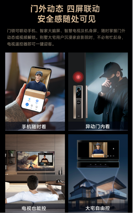 它的可視對講功能也極其便捷,訪客按鈴時,高清畫面可同時推送到手機、電視及門鎖屏幕上,讓你無論在家中何處都能實時對講,無需匆忙應門。而臨門語音提醒更是貼心,鎖門時自動播報天氣或節(jié)日提醒,還支持錄制家庭留言,讓每次出門和回家都多了一份溫暖與關懷。