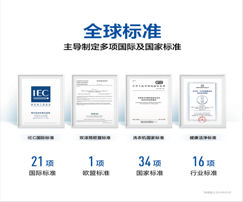 在專利和標準方面,海爾洗衣機主導參與3項IEC國際標準,主導制定34項國家標準、牽頭制定 16 項行業標準,彰顯其行業領導地位。此外,海爾洗衣機是唯一主導洗滌國際標準工作組的中國品牌,也是衣聯網IEEE國際標準的主導者,持續在國際舞臺上展現“海爾智慧”。